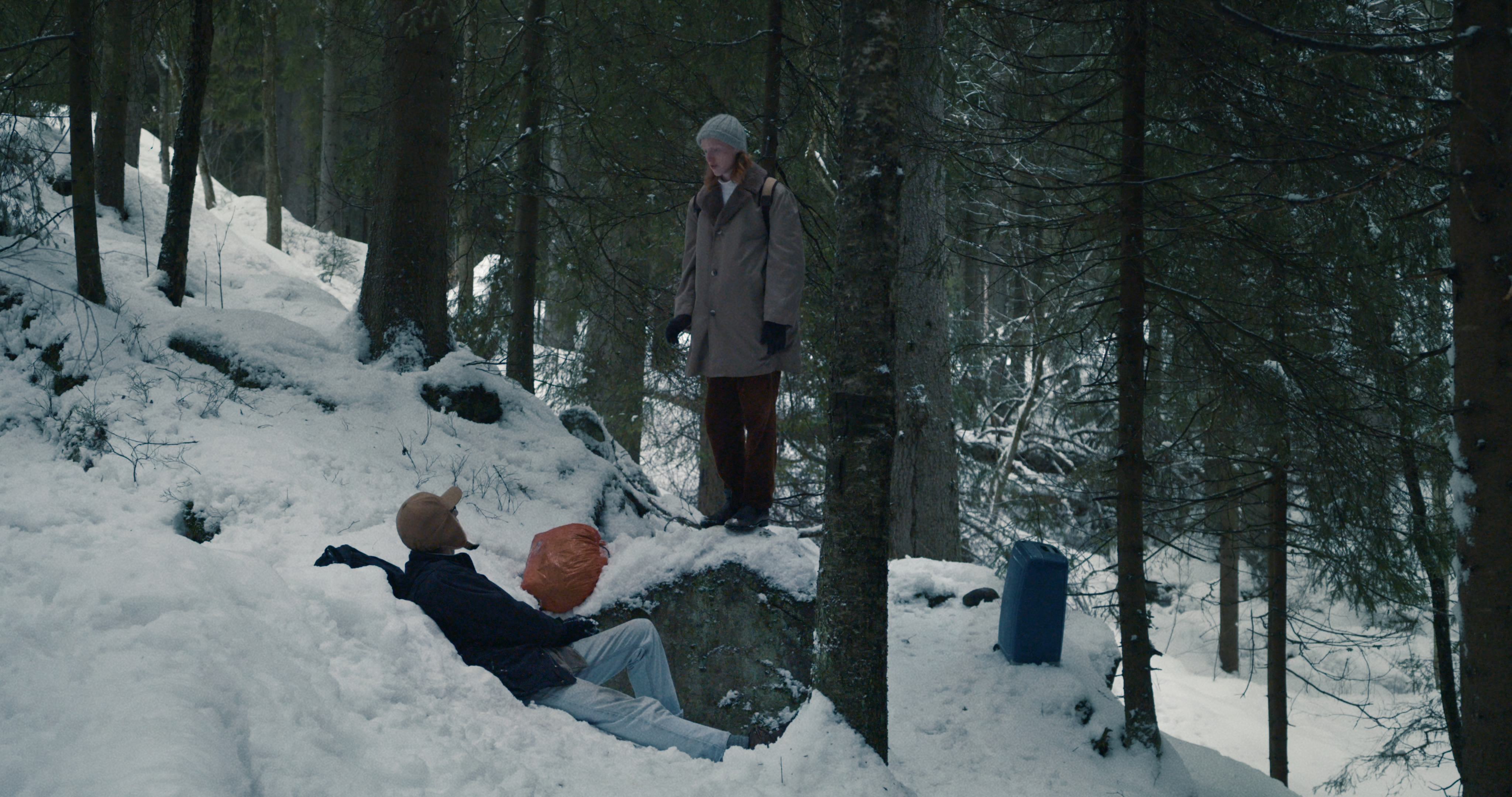 Two witty, sweet and confused men become friends because they don’t have anything better to do. Their day oscillates between small talk, existential crisis and dubious male rites of passage, whilst wandering the woods surrounding Oslo, in search of a suitable place to camp in the middle of winter.